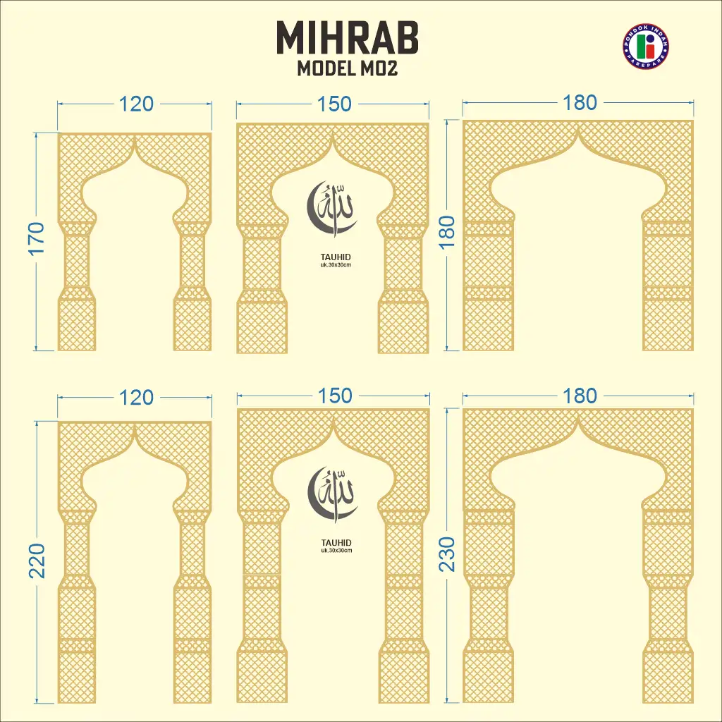 Mihrab ini dirancang dengan detail presisi menggunakan material MDF, Plywood, dan PVC Board, menghasilkan tampilan kokoh namun elegan.