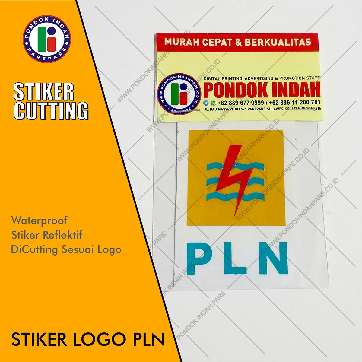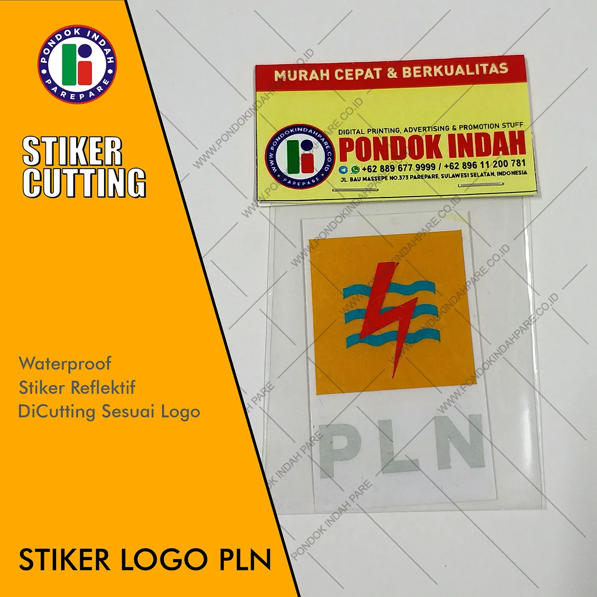 Jangan lewatkan kesempatan ini! Pesan sekarang di Pondok Indah Parepare dan jadikan logo PLN Anda lebih menonjol dengan stiker cutting reflektif terbaik!